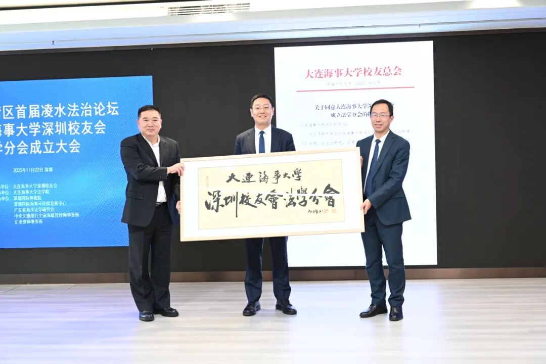 2025年11月22日上午,本所主任谭传俊律师、张书法律师等人参加在深圳国际仲裁院隆重举办的“粤港澳大湾区首届凌水法治论坛暨大连海事大学深圳校友会法学分会成立大会”。